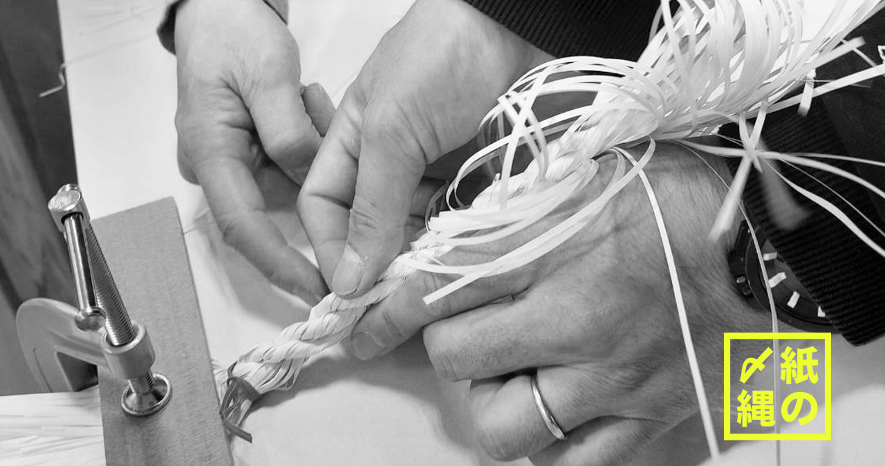 紙問屋ミフジで必ず発生する紙の切れ端をしめ縄にすることで